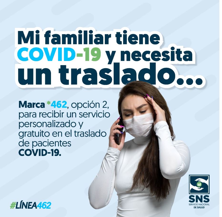 ☎️La línea COVID, *462, opción 2, está disponible las 24 horas del día, 7 días a la semana, para brindarte soporte en los procesos de traslado de pacientes COVID-19 a los centros de la Red Pública en todo el territorio nacional y sin costo alguno. Marca462 #SNSInforma #SNSRD